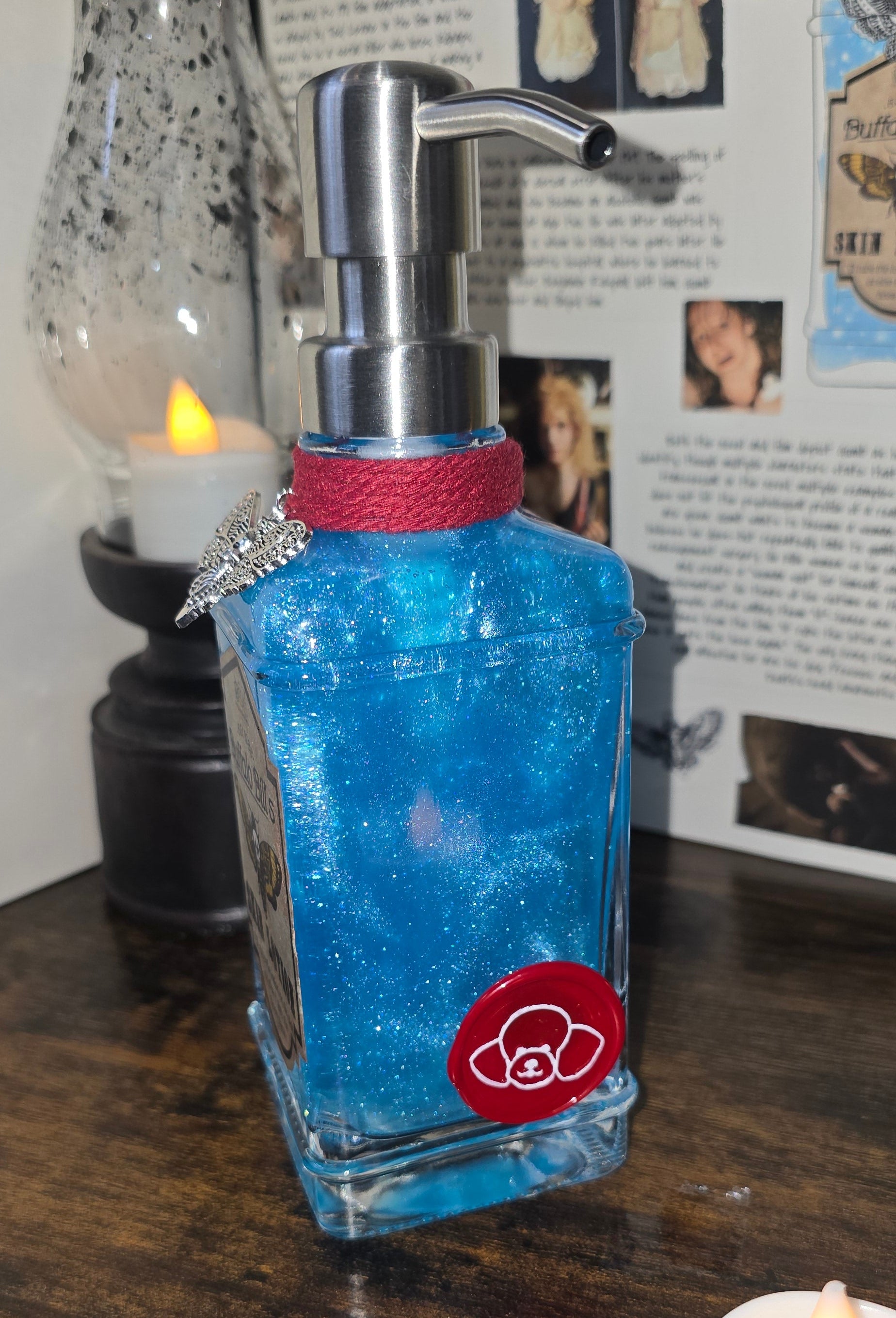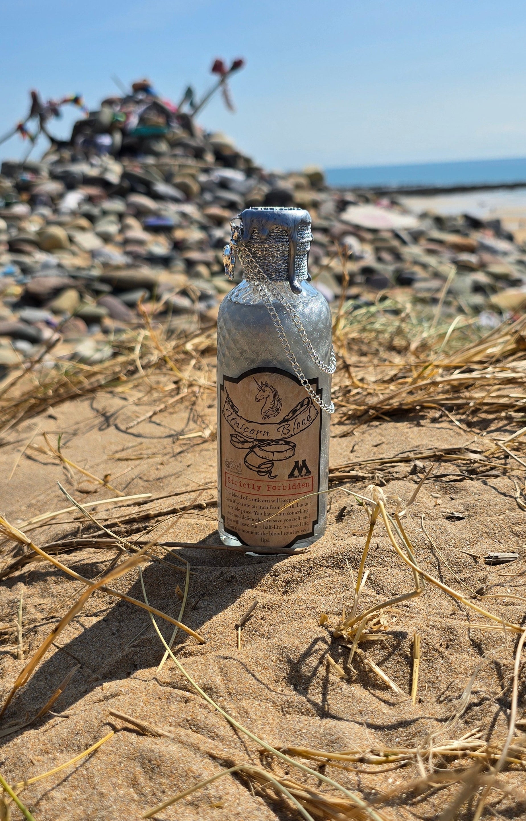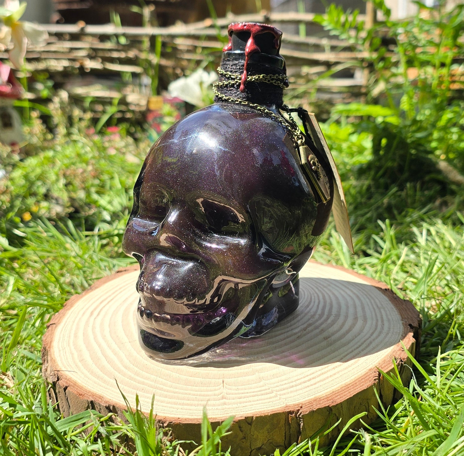 The bottle design is rich in detail — the deep red color gives it an otherworldly, mystical aura, and the gold dragon charm wrapped around the neck adds an extra touch of mythical luxury. The wax seal on the top looks beautifully authentic, as though it’s sealing away some ancient potion or dragon’s essence. The gold chain accent is a nice finishing touch that enhances the fantasy theme without looking gaudy. The little dragon scale detail on the front is especially eye-catching — it gives the bottle a tactile, handcrafted charm.