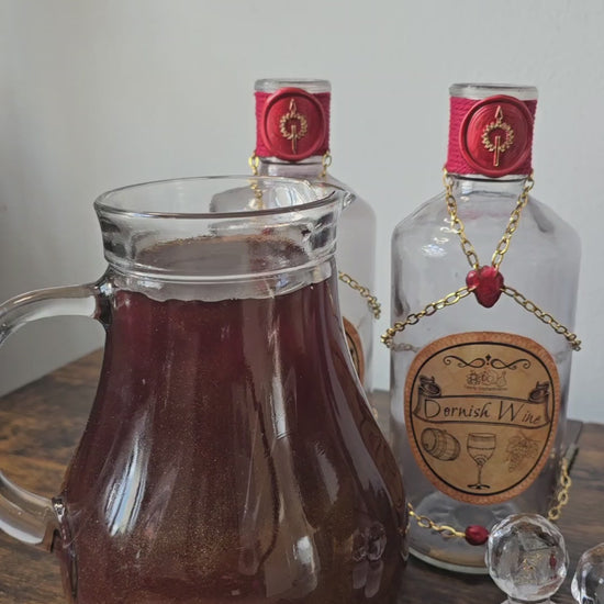 Transport yourself to the sun-drenched, passionate lands of Dorne with this Dornish Wine Potion Bottle. Inspired by the rich, full-bodied reds favored by the people of Sunspear, this decorative piece is a vibrant homage to the fiercely independent and fiery nature of House Martell.