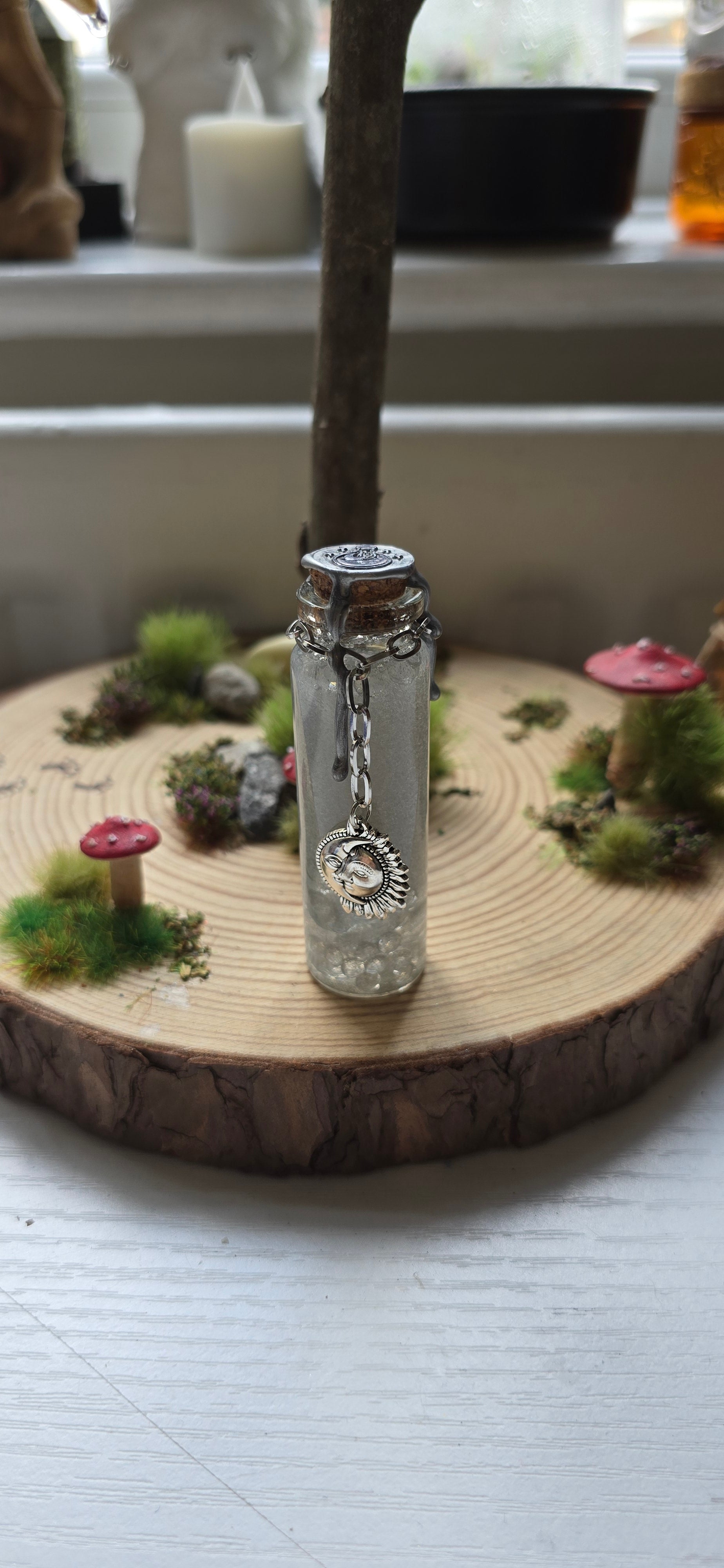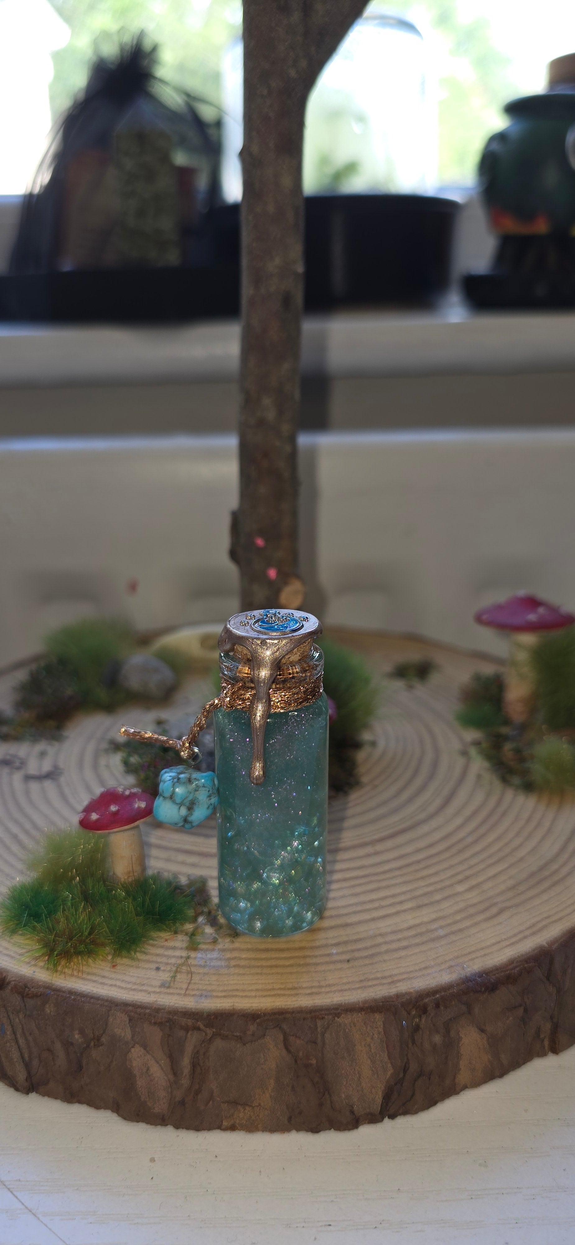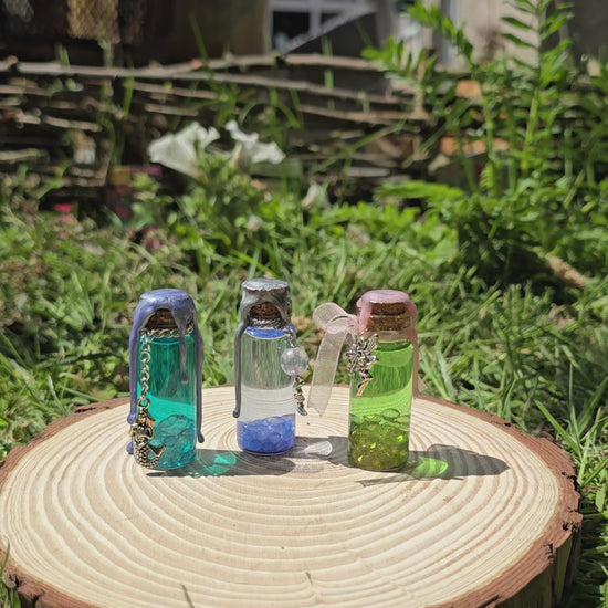 Discover your new favorite magical accessory! Our handcrafted fidget potion bottles are packed with enchanting crystals that jingle delightfully with every shake.